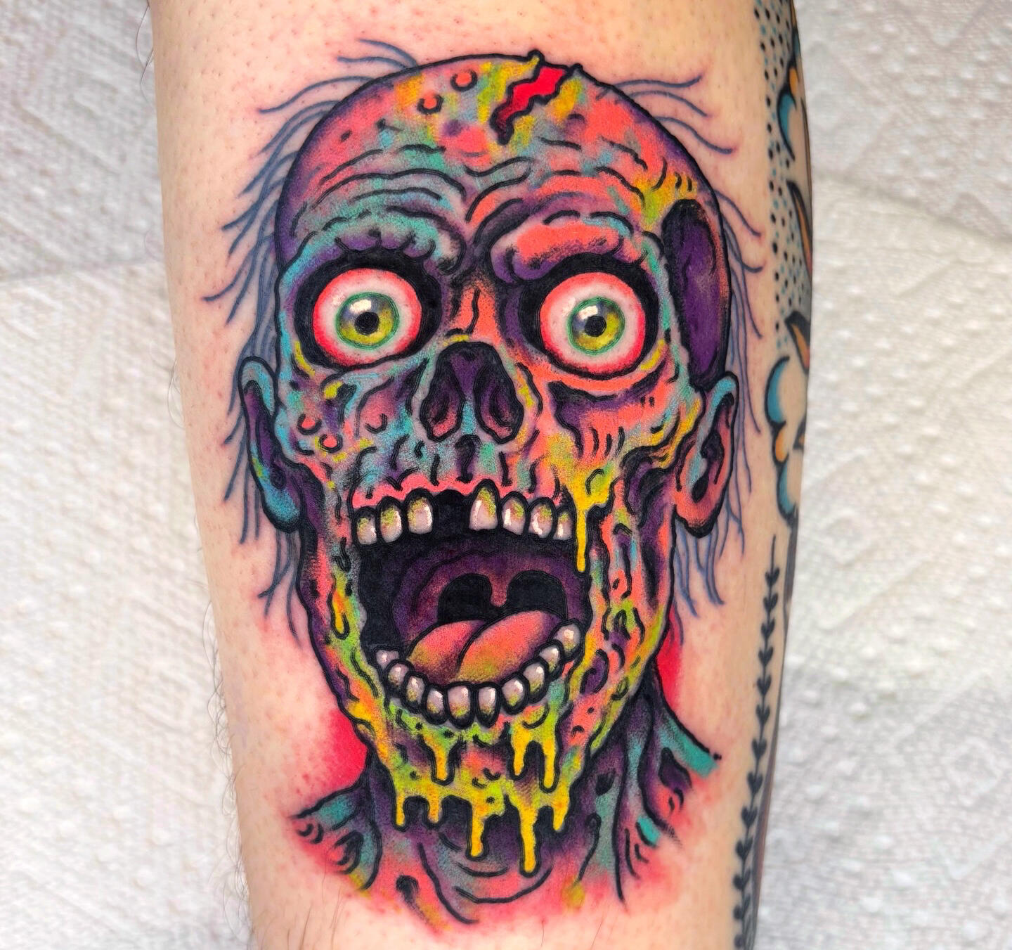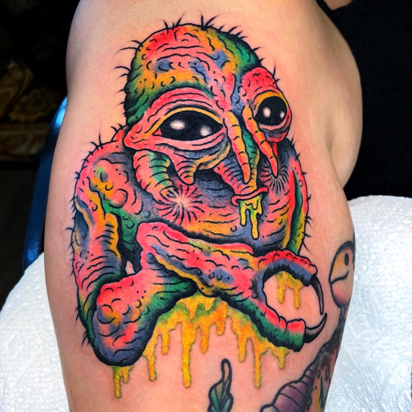 Randy Conner has been creating insanely colorful and weird tattoos for the last decade. He works out of a private studio in Portland, Oregon and is ready to make your tattoo dream a reality.