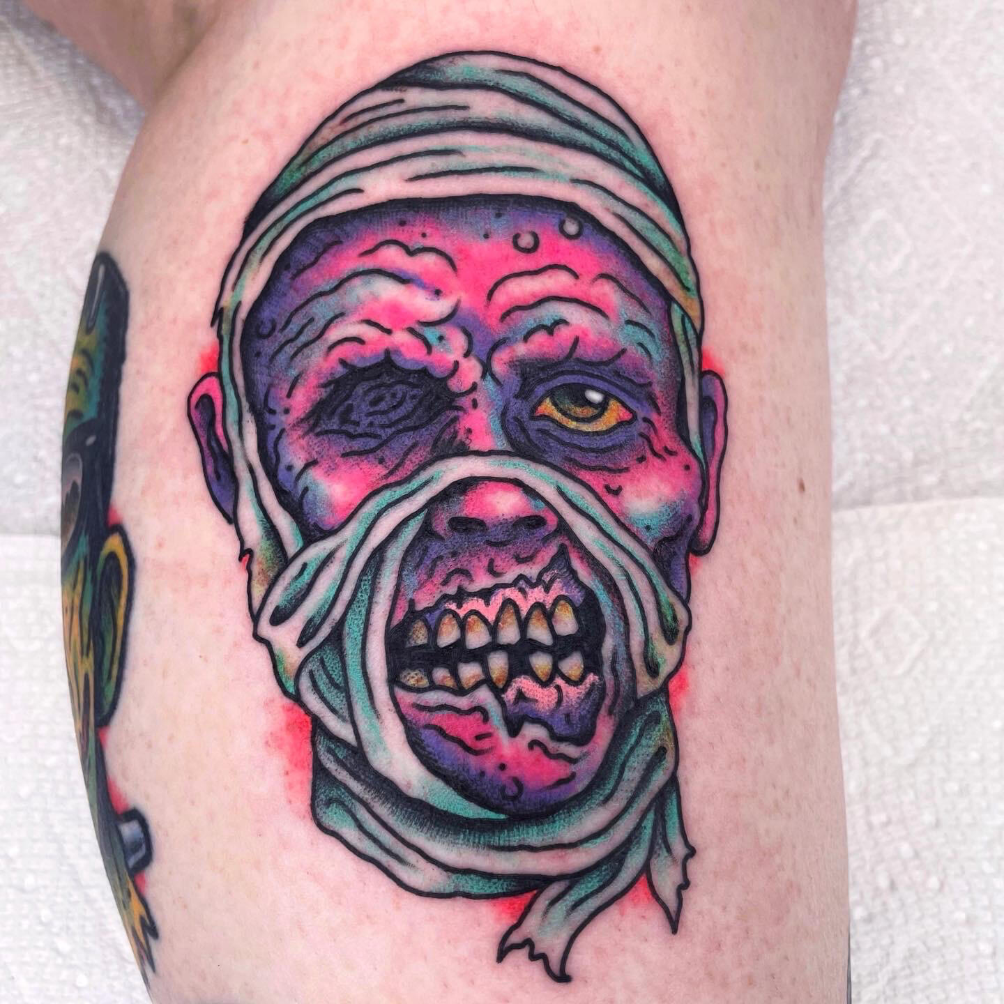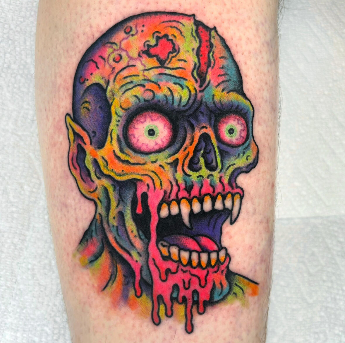 Randy Conner has been creating insanely colorful and weird tattoos for the last decade. He works out of a private studio in Portland, Oregon and is ready to make your tattoo dream a reality.